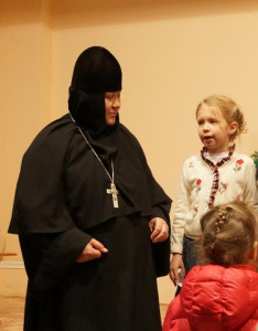 – Это так. Но вот прошло около четырех лет, наполненных сестринскими молитвами и трудами. Мы за это время один монастырский храм отреставрировали и освятили, затем – второй. Построили кельи для сестер. И вода у нас появилась, и отопление, и канализация... Словом, все потихоньку в монастыре стало налаживаться. Все же мысли о многострадальном московском храме Иерусалимской иконы Божией Матери меня не оставляли. Бывая в Москве, я заходила туда и с прискорбием отмечала, что нет в нем какой-то энергии жизни. Да, службы совершались, только приходили на них, в основном, бабушки. Причем бабушки воинствующие в том смысле, что они не хотели пускать сюда детей, которые могли, допустим, разговаривать или ходить по храму, что вызвало бы у них недовольство. И бабушки запрещали мамочкам с ребятишками появляться в храме. У меня из-за этого душа болела, поэтому я обратилась к Святейшему Патриарху Алексию II с просьбой отдать нам этот храм под подворье, где можно было бы осуществлять какие-то детские проекты. Патриарх Алексий сказал, что подумает. Прошло несколько месяцев – ответа не было. Я дерзнула второй раз подойти к Его Святейшеству с той же просьбой. У нас в монастыре есть Воскресная школа, замечательная студия «Глаголъ добро», можно сказать, семейная, так как некоторые москвичи и верующие из Подмосковья, полюбившие и монастырскую службу, и наш монастырь со стройными березками и гусями, спокойно разгуливающими возле цветочных клумб, приезжают сюда с ребятишками в воскресные и в праздничные дни. Дети поют за богослужениями, устраивают спектакли и концерты для насельниц и прихожан монастыря, выступают «на гастролях». Но не все к нам в сельскую местность могут добраться. А здесь все-таки Москва... В итоге Святейший Патриарх Алексий II отдал монастырю подворье, сказав, что поскольку у него уже есть юридический статус – статус Патриаршего подворья, – то менять его не надо: пусть оно будет представительством Крестовоздвиженского Иерусалимского монастыря. И мы сразу устроили здесь Воскресную школу и начали заниматься с ребятами.