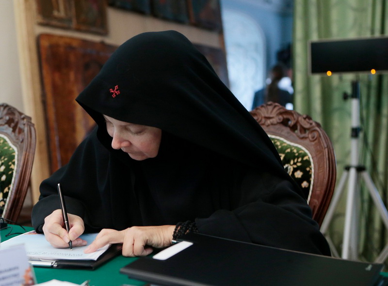 Идя на эту встречу, я уже знала об удивительном жизненном пути игумении Фотинии (Маршал). Она – француженка из состоятельной парижской семьи – училась в Сорбонне, где получила блестящее образование. С юности ее душа потянулась к Богу, и спустя время Господь привел ее в Грецию. Матушка хорошо говорит по-русски и в свободную минуту переводит с русского, английского, греческого на родной французский душеполезные книги (назову некоторые из них: «Письма игумении Таисии», «Наставления Валаамского старца Назария», «Житие и чудеса Святителя Спиридона Чудотворца»).