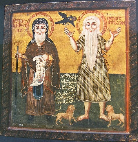 Поселившись в пещере у подножия горы, преподобный Павел, никому не ведомый, прожил в ней 91 год, неустанно молясь Богу днем и ночью. Питался он финиками и хлебом, который приносил ему ворон, одеждой из пальмовых листьев укрывался от холода и зноя. По смотрению Божию, уже незадолго до кончины преподобного Павла, Бог открыл о нем преподобному Антонию ВеликомуЖитие.. Преподобный Антоний Великий.Икона. Преподобный Антоний ВеликийМолитвы (память 17 января), который также подвизался в Фиваидской пустыне. Однажды святому Антонию пришла мысль, что едва ли есть другой такой пустынник, как он, и тогда он услышал глас: "Антоний, есть раб Божий, который совершеннее тебя и прежде тебя поселился здесь в пустыне. Иди в глубину ее и найдешь его". Антоний пошел и нашел пещеру святого Павла. Преподав Антонию урок смирения, преподобный Павел вышел ему навстречу. Старцы назвали друг друга по имени, обнялись и долго беседовали. Во время беседы прилетел ворон и принес им обоим хлеб. Преподобный Павел открыл преподобному Антонию приближение своей кончины и завещал похоронить его. Преставился святой Павел во время молитвы, стоя на коленях. Преподобный