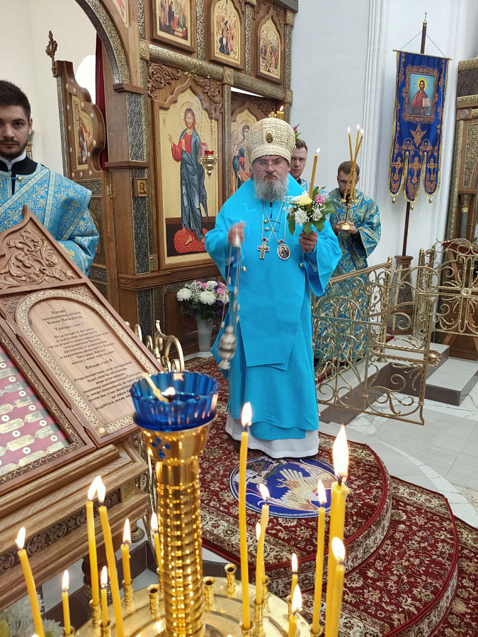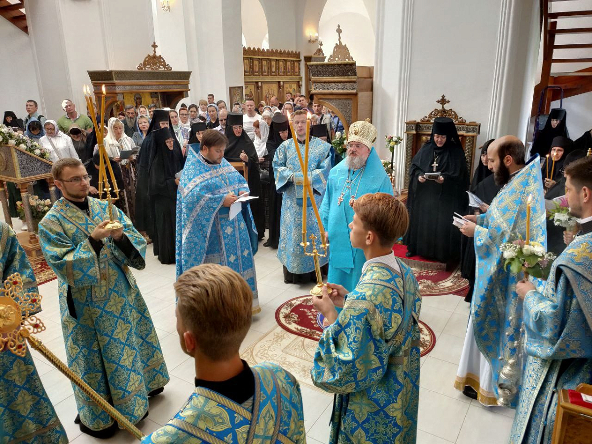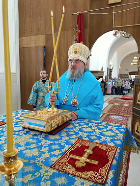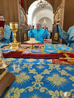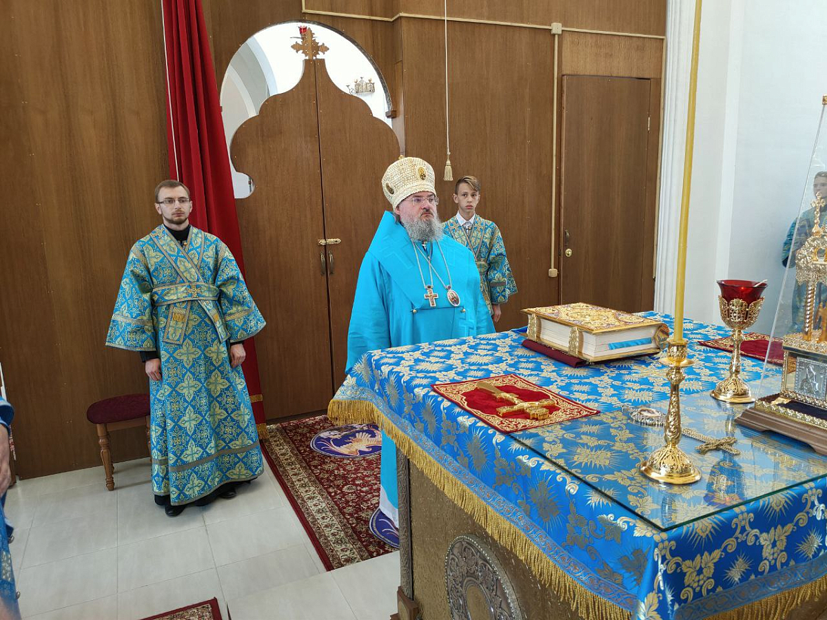 В Успенском соборе обители Преосвященному владыке сослужили: протоиерей Антоний Хатунцев, иерей Андрей Товмасян, диакон Евгений Ковригин, диакон Евгений Васильев и иеродиакон Алексий (Гудименко).