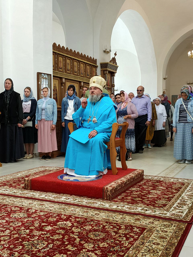 Завершая богослужение, владыка Никита произнес для богомольцев проповедь. Архипастырь поблагодарил матушку игумению за молитвы и труды, которые она вместе с насельницами монастыря несет в благоукрашении святой обители, и вручил ей святую просфору.