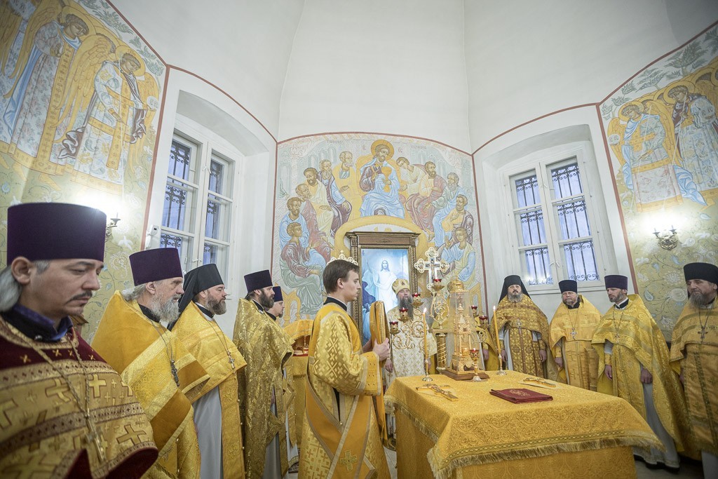 Его Преосвященству сослужили: наместник монастыря Трескавец Бихачско-Петровацкой епархии (Сербская Православная Церковь) архимандрит Варнава (Дамьянович); секретарь Сергиево-Посадской епархии, благочинный Ивантеевского церковного округа протоиерей Иоанн (Монаршек); благочинный монастырей Сергиево-Посадской епархии игумен Алексий (Горлычев); благочинные церковных округов: Дубненско-Талдомского – протоиерей Павел (Мурзич), Дмитровского – протоиерей Афанасий (Чорногуз), Рогачевского – иерей Сергий (Сафронов); настоятель Борисоглебского мужского монастыря игумен Августин (Шорников); духовенство епархий Тверской митрополии и клирики Александро-Невского монастыря.
