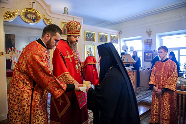 По окончании богослужения игумения Никона выразила главе Выксунской епархии благодарность за визит, совершенное богослужение и архипастырскую заботу об обители. Ее Высокопреподобие преподнесла епископу Варнаве заздравную просфору.