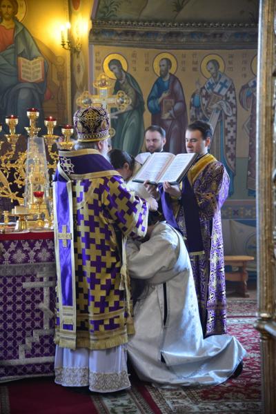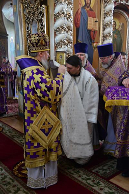 За Литургией Владыка рукоположил иеродиакона Кронида (Перченко) в сан иеромонаха. Новорукоположенный будет нести свое монашеское послушание в Белобережской Иоанно-Предтеченской мужской пустыни.