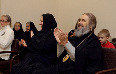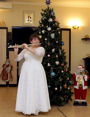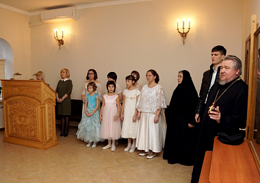 По завершении общей молитвы настоятельница монастыря игумения Амвросия (Соломатина) и юные воспитанницы монастыря, давно ставшие ей родными дочерьми, поблагодарили владыку Алексия за визит и поздравления творческим подарком – музыкальным театрализованным представлением, раскрыв посредством произведений мировой и русской классической музыки радость праздника Боговоплощения.