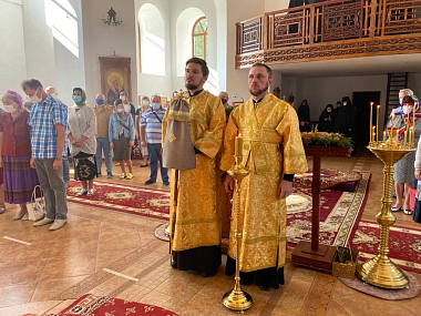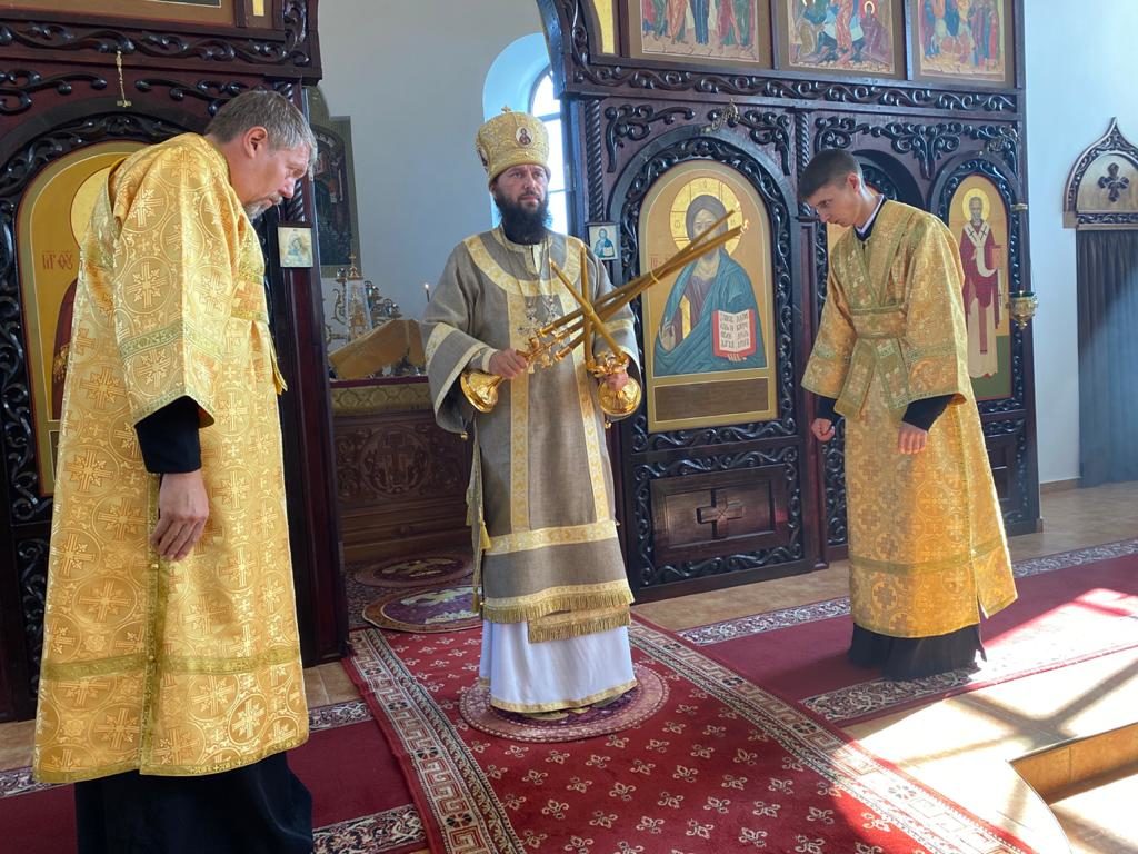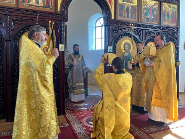 За праздничным богослужением его Высокопреосвященству сослужили клирики монастыря протоиерей Игорь Патрин и иерей Владимир Пономаренко.
