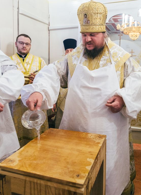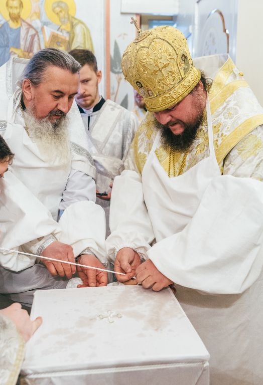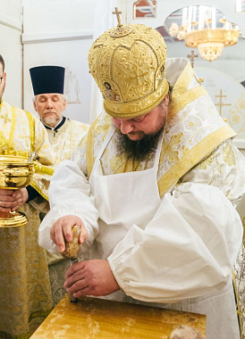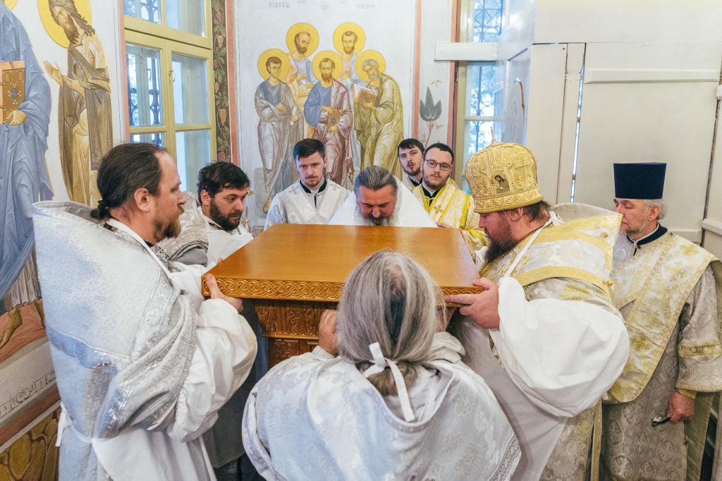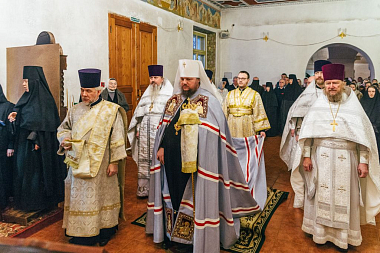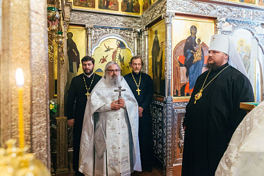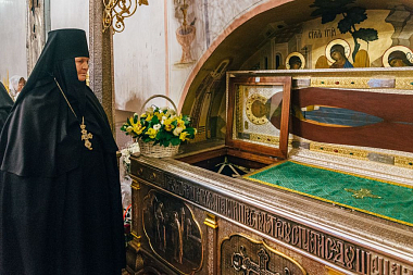По окончании богослужения состоялось молебное славление преподобному Пахомию Нерехтскому, после чего Высокопреосвященнейший владыка поздравил собравшихся с важным событием в духовной жизни монастыря – освящением престола – и поблагодарил всех, кто потрудился над подготовкой Пахомиевского придела к великому освящению.