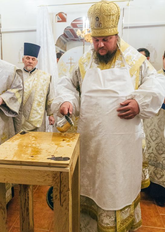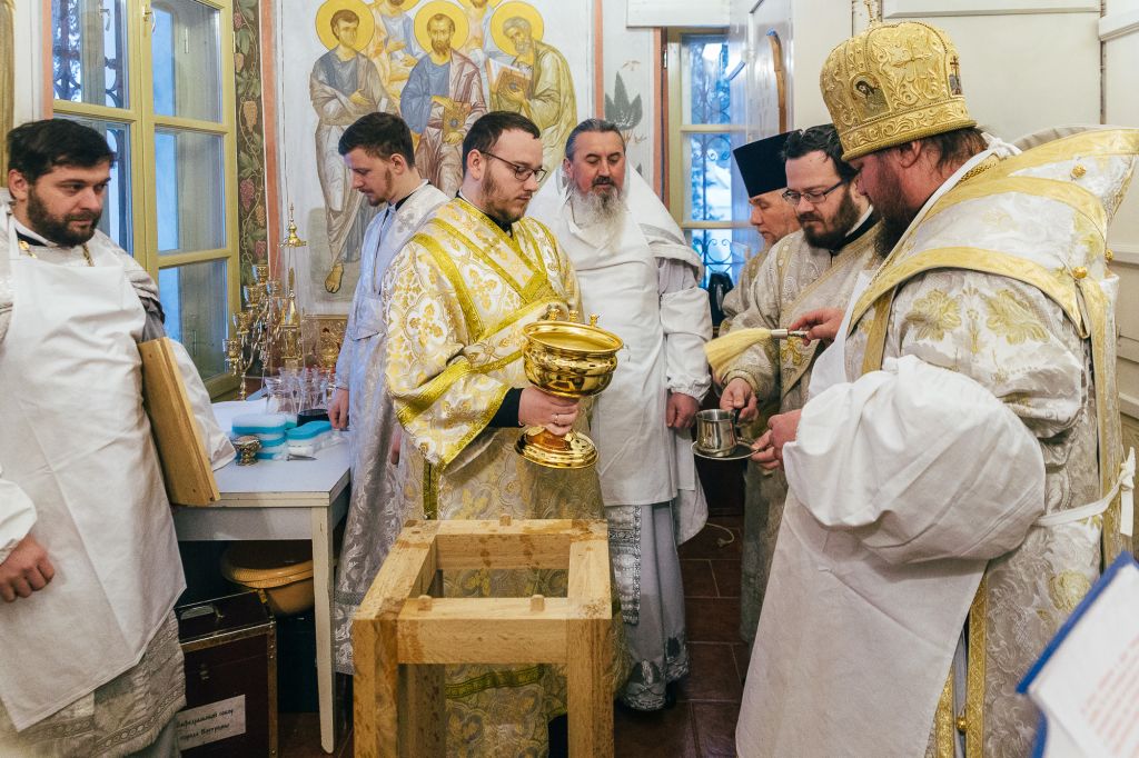 Затем в новоосвященном приделе была совершена Божественная литургия. Главе Костромской митрополии сослужило духовенство Нерехты и Костромы: благочинный церквей Нерехтского района протоиерей Петр Молнар, игумен Дионисий (Гусев), протоиереи Сергий Фатхутдинов, Григорий Лыжин и Владимир Гаврилов, иереи Георгий Лядухин, Митхаил Оболенский, Михаил Мостовой и Александр Борисов. Диаконский чин возглавил протодиакон Сергий Мальцев.