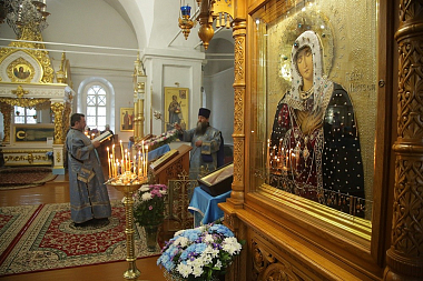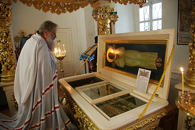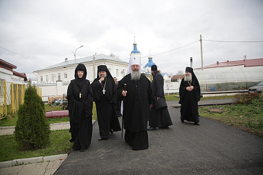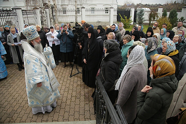 По прибытии в монастырь митрополит Кирилл поклонился святыням обители – чудотворной иконе Богоматери «Умиление» и мощам блаженного Космы Верхотурского, покоящимся в храме во имя Покрова Пресвятой Богородицы.