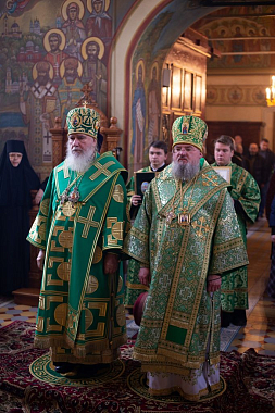 По окончании Литургии митрополит Климент и епископ Никита совершили молебен перед чтимой иконой прп. Сергия Радонежского. Архипастырям сослужил собор духовенства.