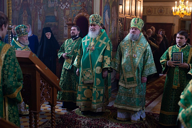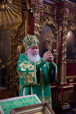 На сугубой ектении были произнесены особые прошения о единстве святого православия, после чего глава Калужской митрополии вознес молитву о мире на Украине.