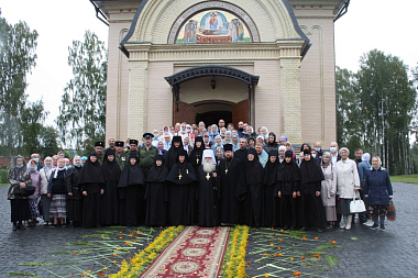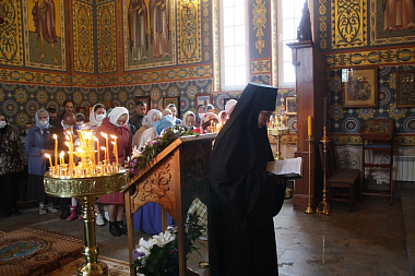 За богослужением молились настоятельница монастыря игумения Варвара (Иванова) с сестрами, представители Министерства национальной и региональной политики Карелии, паломники.