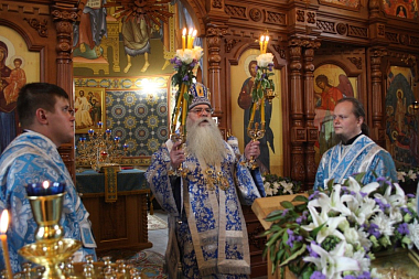 В течение нескольких месяцев в Успенском храме работали иконописцы, осуществлялась роспись стен алтаря и центральной части храма. Перед началом Божественной литургии владыка Константин освятил иконописные образы, украсившие своды и стены храма.