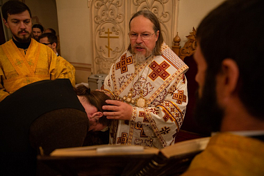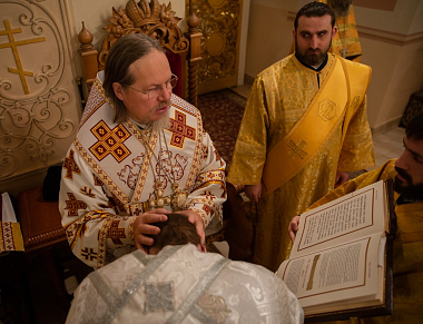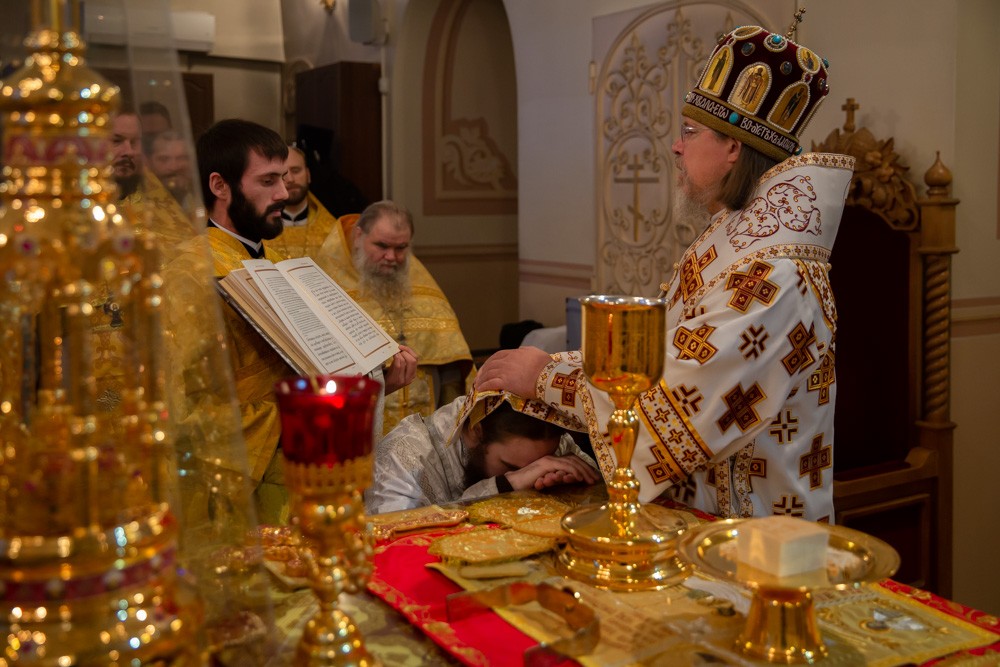 За Литургией Его Высокопреосвященство совершил диаконскую хиротонию насельника Иоанно-Богословского монастыря монаха Никодима (Скрябина).