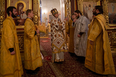 По окончании богослужения владыка Марк обратился к верующим с наставлением, посвященным святому, вспоминаемому в этот день, святителю Иоанну Златоустому.