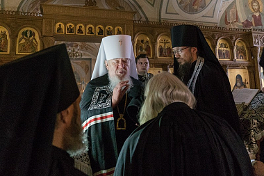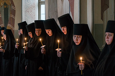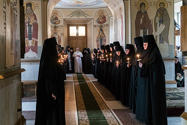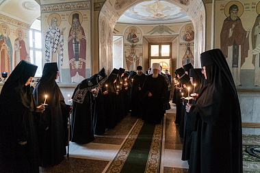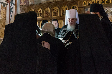 За богослужением молились настоятельница Алексиево-Акатова монастыря игумения Варвара (Сажнева), монашествующие сестры, послушницы и прихожане обители.