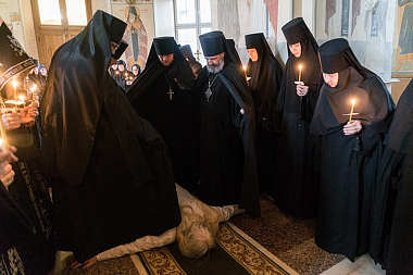 В совершении чина монашеского пострига в нижнем храме Алексиевского собора обители приняли участие благочинный Рамонского церковного округа архимандрит Кирилл (Костиков), наместник Свято-Успенского Дивногорского мужского монастыря игумен Алексий (Сукачев), настоятель Митрофановского храма Воронежа иеромонах Макарий (Комаров) и преподаватель Воронежской духовной семинарии иеромонах Серафим (Тищенко).