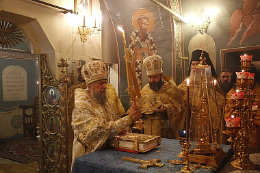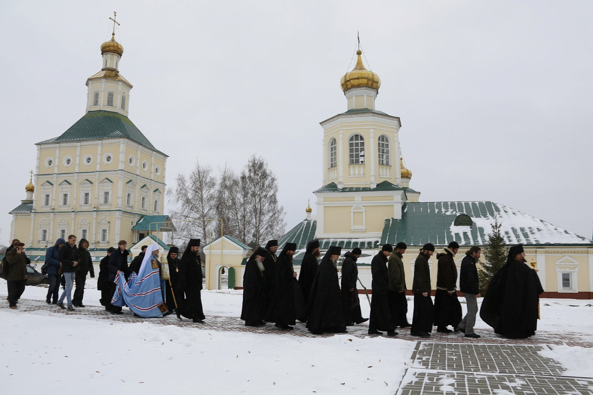 Его Высокопреосвященству сослужил духовник Саранской епархии, наместник обители игумен Мелетий (Кисняшкин) с братией монастыря в священном сане, настоятель храма в честь мученика Андрея Стратилата в поселке Левжинский архимандрит Савватий (Хрущ).