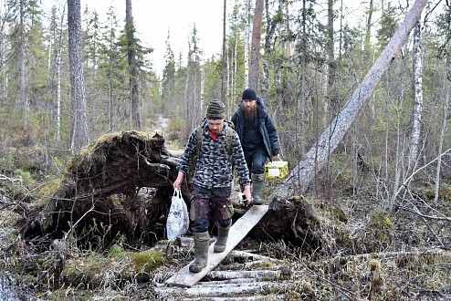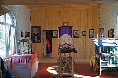 «От обители путники проехали четыре часа по лесной дороге, но до озера еще нужно было пройти пешком 800 метров по проложенным гатям. Чтобы перенести все привезенные продукты и другие необходимые для жизни в скиту вещи, этот путь им пришлось проделать дважды. На берегу путешественников встретил насельник Владимир, на лодке он доставил наместника и его сопровождавших в скит», – рассказала пресс-секретарь Пинежского благочиния Людмила Соснина.