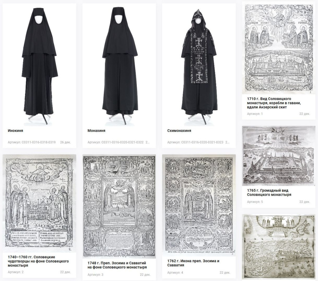 Уже сейчас в виртуальном музее монашества посетители могут познакомиться с двумя экспозициями: «Монашеская одежда» и «Соловецкие гравюры».