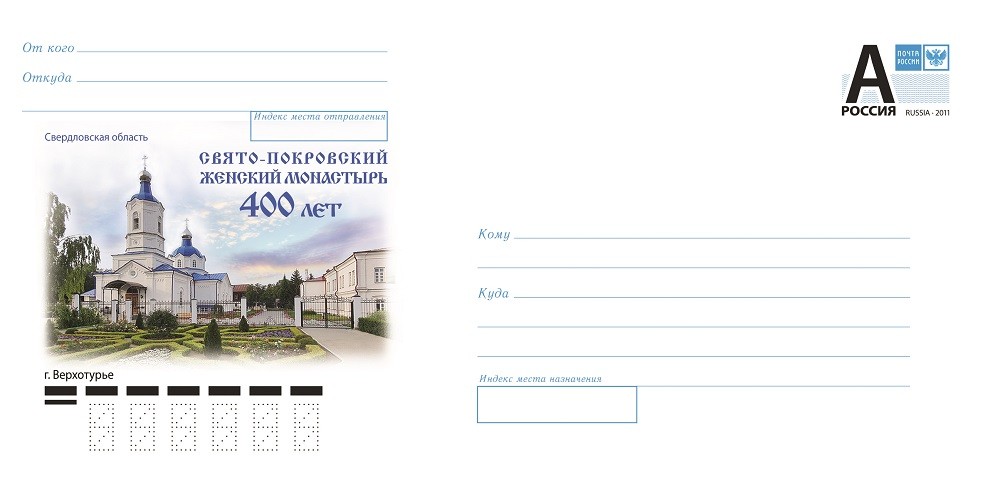 Вышел из печати и поступил в продажу в отделения «Почта России» конверт, выпущенный к 400-летию старейшей на Урале и в Сибири женской обители – Свято-Покровского женского монастыря в Верхотурье.
