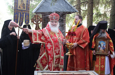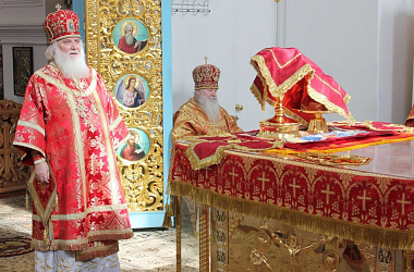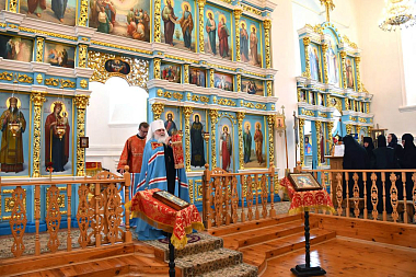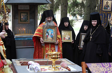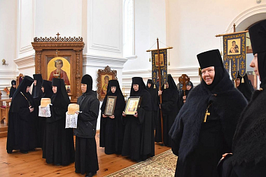 За богослужением молились игумения Арсения (Семенова), настоятельница обители, с сестрами монастыря, и игумения Зинона (Деева), настоятельница Свято-Тихоновского Преображенского женского монастыря, с сестрами.