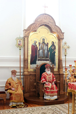 Высокопреосвященнейшим владыкам в монастырском соборе Вознесения Господня сослужили: архимандрит Трифон (Голубых), благочинный Задонского Рождество-Богородицкого мужского монастыря; иеромонахи Нектарий (Добронос) и Герман (Смирнов), иерей Владимир Широков, клирики обители; диаконы: Андрей Кантарюк, клирик Христо-Рождественского кафедрального собора Липецка, и Виктор Воронин, клирик обители.