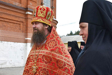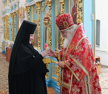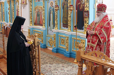 Игумения Арсения, в свою очередь, приветствовала владыку Арсения и поблагодарила Его Высокопреосвященство за совершенное богослужение в день престольного праздника одного из храмов обители.