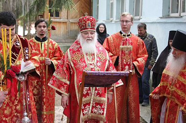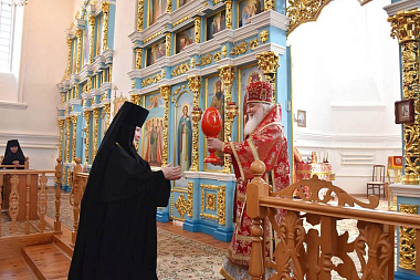По окончании богослужения Высокопреосвященнейший владыка Арсений приветствовал матушек игумений, сослужившее духовенство, сестер обители и поздравил всех с праздником Светлого Христова Воскресения.