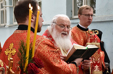 По заамвонной молитве глава Липецкой митрополии возглавил крестный ход, во время которого у колодца с родниковой водой, расположенного у домового храма, был отслужен чин малого освящения воды.