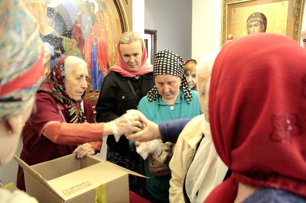 Кроме этого, в монастыре ежемесячно производится выдача продуктовых наборов и одежды малообеспеченным семьям и одиноким пожилым людям.