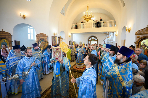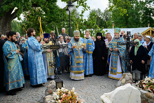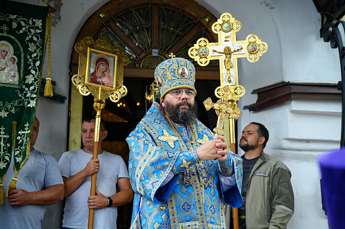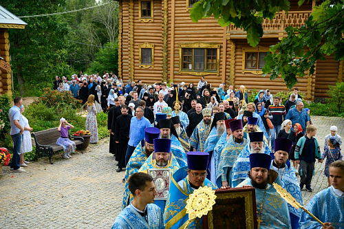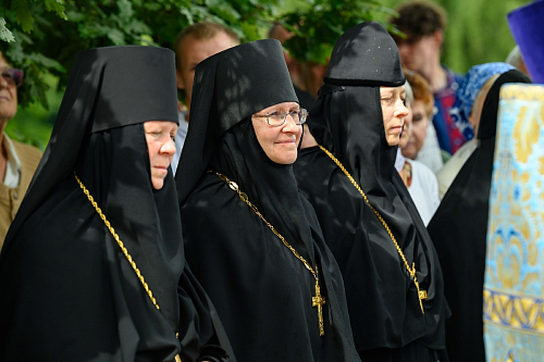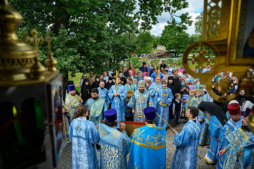 По окончании богослужения был совершен крестный ход с чтимым в обители списком иконы Пресвятой Богородицы «Всех скорбящих Радость» вокруг храмов обители. Во время крестного хода за алтарем Троицкого храма была совершена заупокойная лития по почившим настоятельницам монастыря.