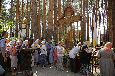 У шахты Преосвященные владыки почтили память безвинно убиенных и совершили молебен, а также исполнили Херувимскую песнь, которую, как известно, пели сброшенные в шахту мученики в течение нескольких дней, пока они не отошли в мир иной. Вокруг места мученической кончины, ставшего местом притяжения сотен тысяч паломников со всего мира, под особо проникновенное исполнение Херувимской песни было совершено каждение и пронесен ковчег с мощами святой преподобномученицы Великой княгини Елисаветы Феодоровны.