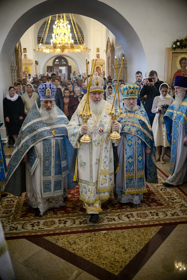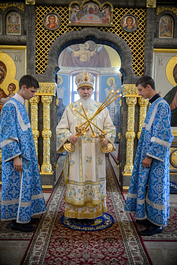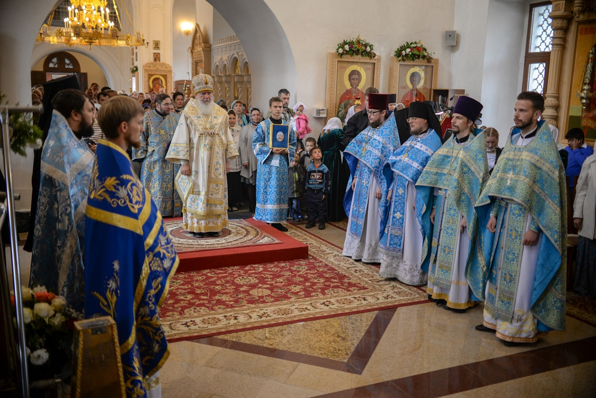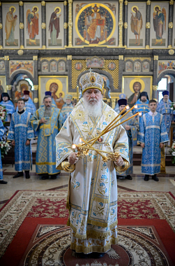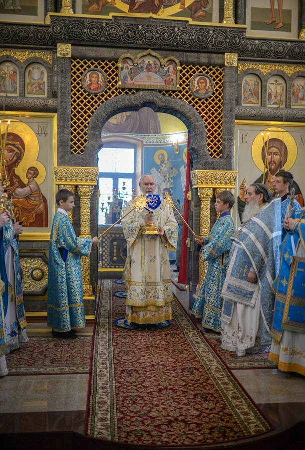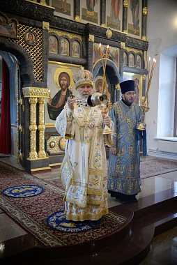 По возвращении в храм перед чудотворным образом была пропета молитва «Царица моя Преблагая». Затем владыка поздравил всех с праздником и произнес проповедь.
