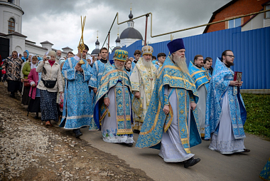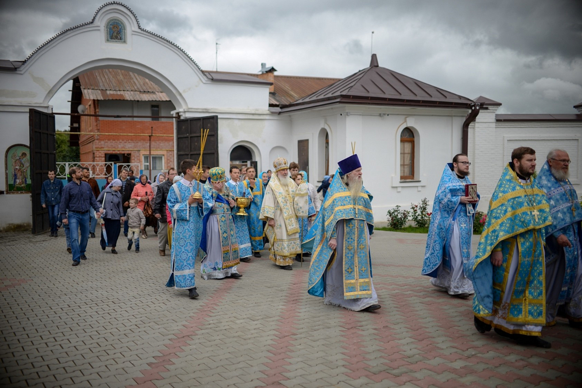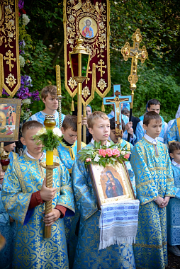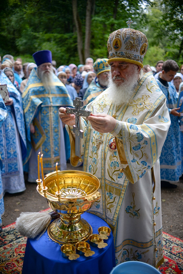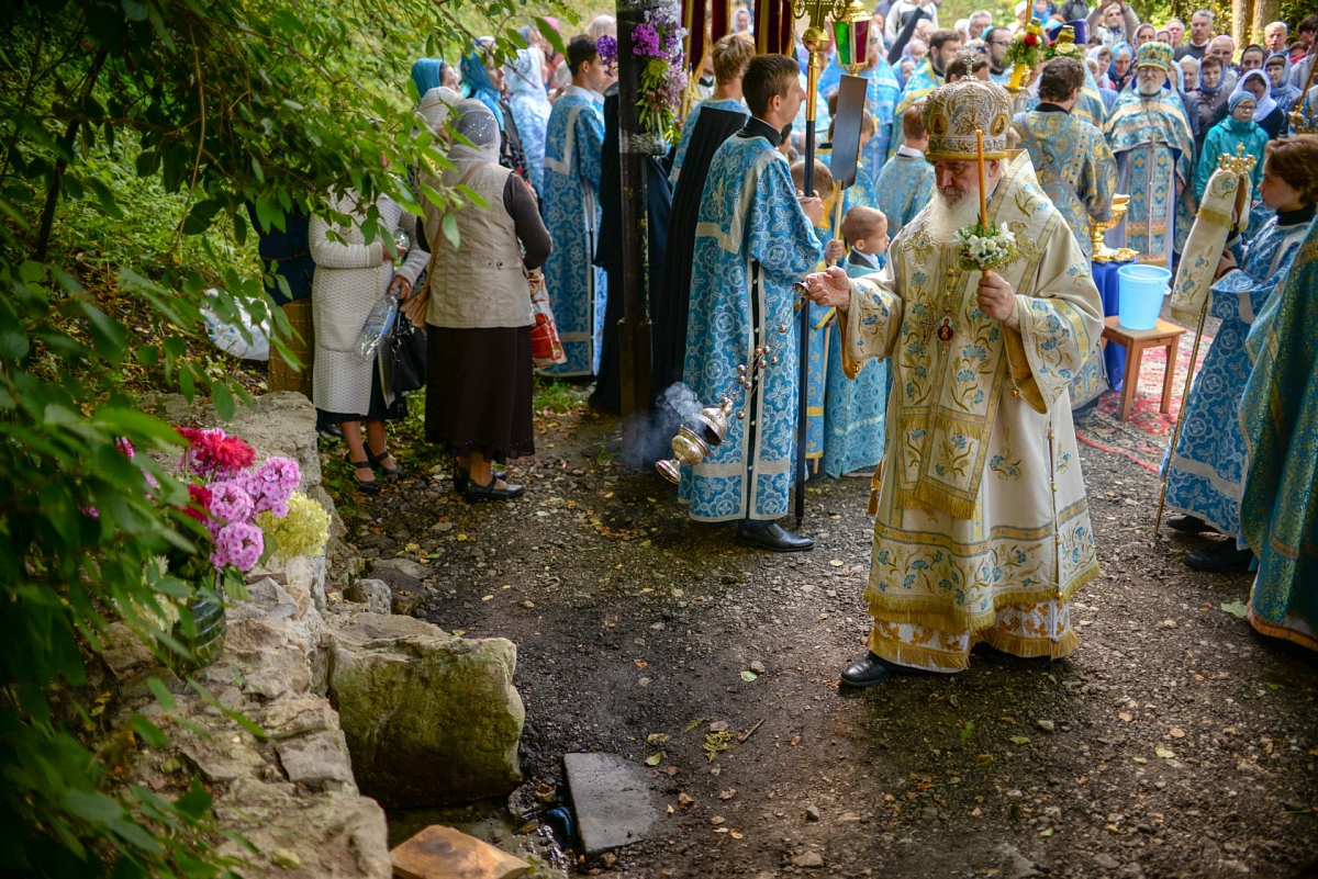По окончании Литургии в храме было совершено молебное пение Пресвятой Богородице, которое продолжилось крестным ходом на святой источник. Здесь было совершено малое освящение воды. После совершения уставных молитвословий митрополит Климент окропил верующих святой водой, призывая на всех благословение и помощь Пресвятой владычицы Богородицы и Приснодевы Марии.