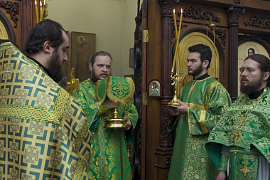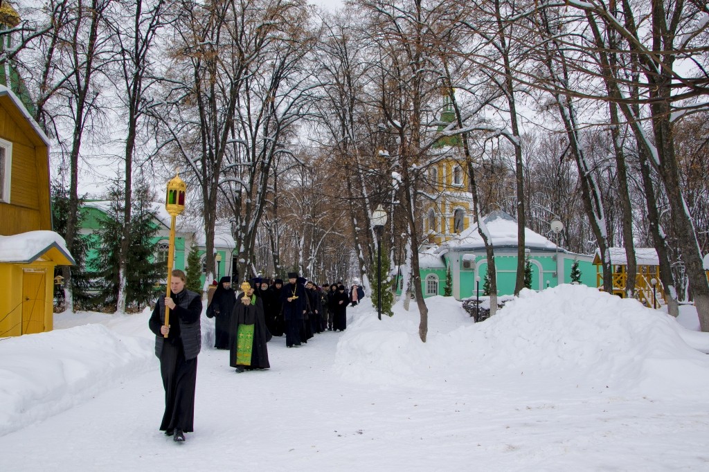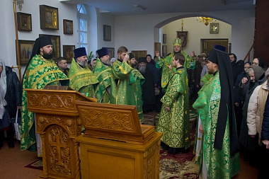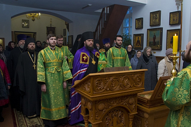Его Преосвященству сослужили секретарь Борисоглебской епархии иерей Павел Приступ, и.о. наместника монастыря иеромонах Дионисий (Шумилин), благочинные церковных округов, а также братия обители и монашествующие Борисоглебской епархии в священном сане.