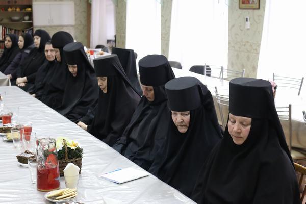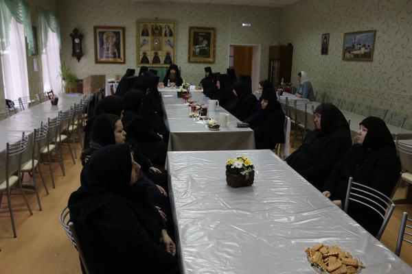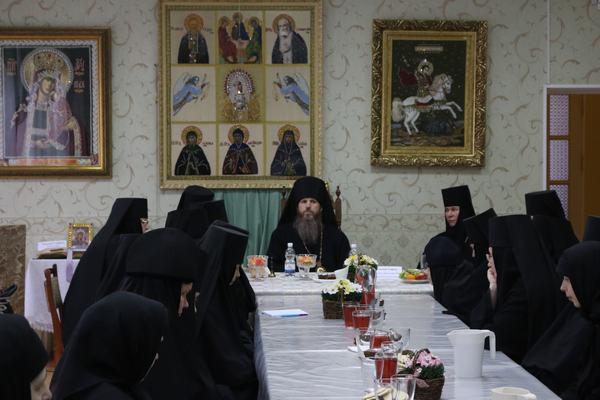 «Монастырский устав и монастырская жизнь имеют свои особенности, закономерности, обычаи. На этом пути встречаются и сложности, недоумения, трудности, поэтому жизненный опыт святых Отцов, отраженный в их творениях, которые они оставили, является для нас подспорьем на пути нашего спасения. Для того мы и изучаем их, обсуждаем, исследуем, чтобы почерпнуть оттуда самое необходимое и полезное. Такие встречи являются для нас и способом духовного общения, в котором мы ощущаем единство, так как во Христе мы все братья и сестры. В прошлый раз темой нашей встречи было послушание. Сегодня мы поговорим о духовных заветах наших святых наставников, подвизавшихся на Нижегородской земле».