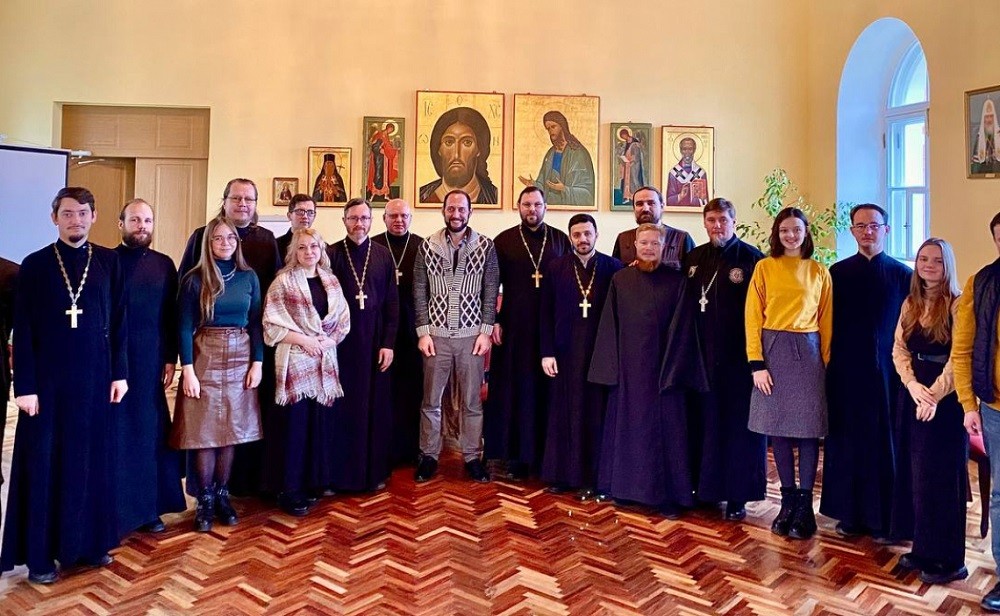 Далее настоятель храма апостолов Петра и Павла при Российском государственном педагогическом университете имени А.И. Герцена протоиерей Димитрий Симонов провел семинар по методике библейских чтений.