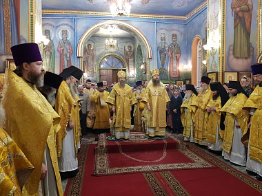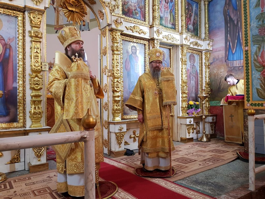 Архиереям сослужили священники Томской митрополии, духовенство монастыря, в т.ч. секретарь Томской епархии архимандрит Иосиф (Еременко), игумен Серафим (Тарабыкин), наместник Преображенского монастыря с. Волок игумен Матфей (Черевикин).