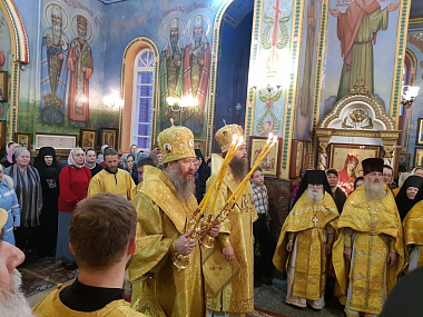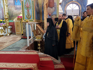 За богослужением молилась настоятельница Свято-Никольского монастыря игумения Ирина (Селиверстова) с сестрами, братия Преображенской обители, многочисленные прихожане и гости праздника.
