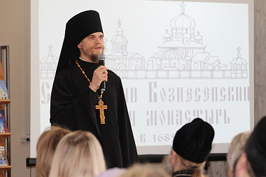 В завершение презентации игумен Агафангел подарил часть тиража в фонд ЦБС г. Сызрани.
