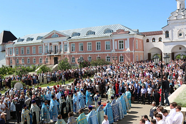 По окончании Литургии прошел крестный ход с образом Божией Матери «Неупиваемая Чаша» во Введенский Владычний женский монастырь.
