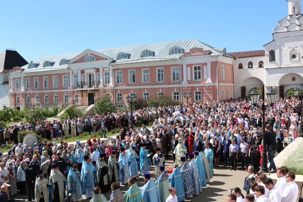 Начался праздник с Божественной литургии на монастырской площади Серпуховского Высоцкого мужского монастыря, которую совершил настоятель обители епископ Серпуховской Роман, викарий Московской областной епархии, благочинный монастырей Московской епархии.