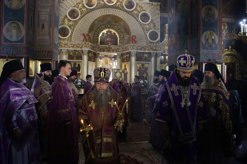 В архипастырском слове по окончании богослужения архиепископ Феофилакт напомнил о замысле Божием, который заключается в том, чтобы мы, научившись здесь, на земле, быть вместе, жаждали этого единства и на небе и получили его. «Вместе же мы можем быть, когда центром и основой нашей жизни является Бог. Разделение в земной жизни станет непреодолимым препятствием для нашего единства с Богом и вечностью. Сегодня мы приносим Богу благодарность за наше единство с дорогими владыками, отцами игуменами и матушками игумениями, которые собрались здесь по благословению Святейшего Патриарха Кирилла для того, чтобы, совершая общую молитву, наполнить эти дни нашим открытым, братским живым общением», – сказал владыка Феофилакт.