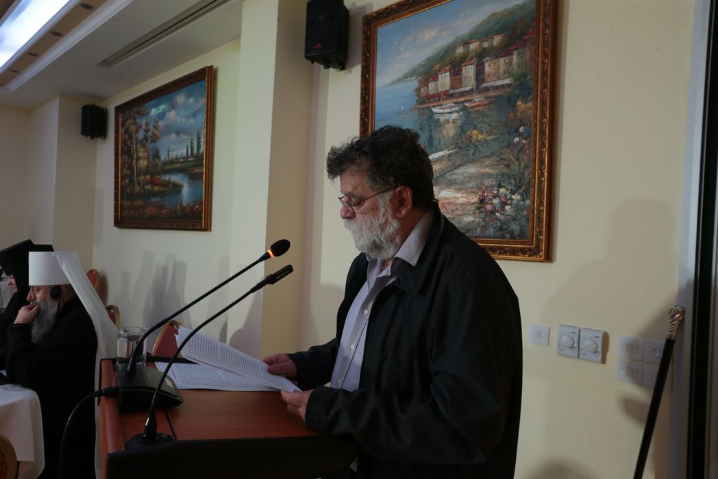 Доклад представителя Кипрской Православной Церкви архимандрита Дионисия (Коптидиса) носил название «Настоятельница священной обители священномученика Ираклидия игумения Харифея как пример современной духовной жизни среди женского монашества на Кипре». Отец Дионисий подробно познакомил аудиторию с житием выдающейся подвижницы, приснопамятной старицы Харифеи, практически нашей современницы, которая в течение тридцати четырех лет несла нелегкий крест игуменства в обители, восстановленной ею из руин. Матушка настоятельница молитвой, собственными трудами и мудрым руководством не просто отстроила и благоукрасила монастырь святого Ираклидия, главное – она создала обитель как духовный организм. По словам архимандрита Дионисия, она «в самом начале своего монашеского пути осознавала ответственность за сохранение монашеских традиций и за духовное окормление сестер». Сохранились и изданы дневниковые записи, письма старицы и ее духовные литературные труды, которые раскрывают этапы ее личностного становления и познания сути монашеской жизни. Она часто говорила, что монашеское жительство есть дар, данный Самим Богом, а не дело человеков. «Чтобы сложился и начал развиваться духовный организм, наставник должен плакать вместе с плачущими и радоваться с радующимися. Он должен снисходить на уровень любого из братии и иметь силу удержать его от падения и возвратить его к своей цели и обетам, данным перед Распятым Иисусом. Для этого требуется вместить в себя огромную любовь, большое терпение и мастерство...» – писала матушка Харифея. Безграничное самопожертвование ради ближнего, истинная любовь и неколебимая вера в Творца не оставляли ее до последнего вздоха. «Ее молитвы да помогут и нам сподобиться Божией милости», – заключил свое выступление отец Дионисий.