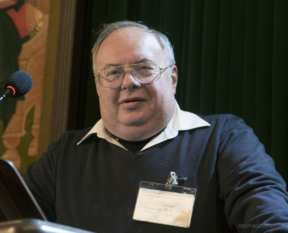 Доклад «Афонские традиции русского монашества» М.В. Бибикова, доктора исторических наук, профессора, заведующего кафедрой византийской и новогреческой филологии филологического факультета МГУ им. М.В. Ломоносова, был посвящен источникам, отразившим формирование преемственных связей между Афоном и русскими монастырями. В своем выступлении докладчик особо отметил, что посещение русскими паломниками Афона оказывало влияние на монашество нашей страны на протяжении всей истории его существования.