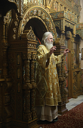 Его Высокопреосвященству сослужили наместник Высоцкого монастыря епископ Серпуховский Роман, братия обители в священном сане.