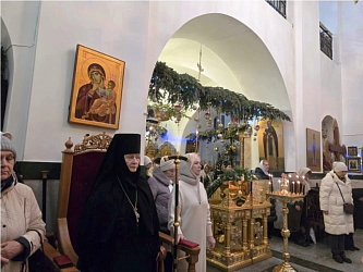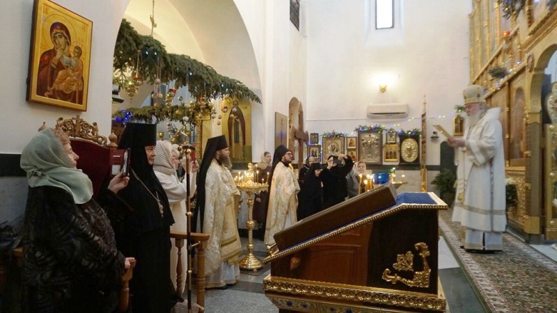 В этот день в прямом эфире осуществлялась трансляция архиерейской Литургии, и люди, которые не смогли прийти в храм в морозный день, смогли посмотреть дома трансляцию службы на сайте монастыря «Всецарица».