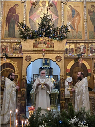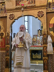 За Божественной литургией Его Высокопреосвященству сослужили клирики обители иеромонахи Феофан (Дудик) и Вениамин (Комоликов). Диаконский чин возглавили клирик монастыря иеродиакон Николай (Тищенко) и прибывшие из Москвы два диакона.