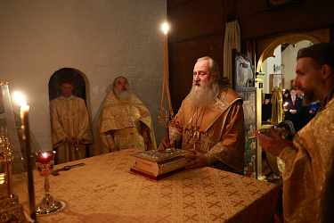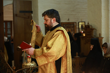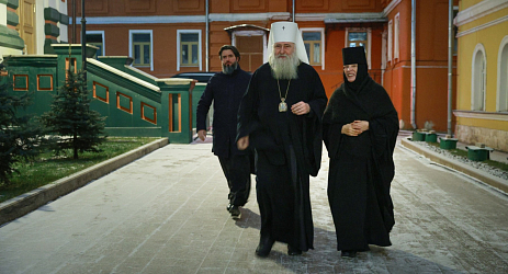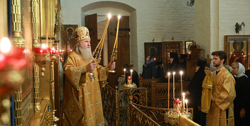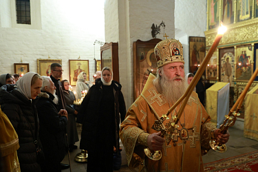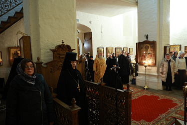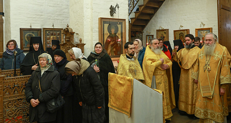 Его Высокопреосвященству сослужило монастырское духовенство. За богослужением молились настоятельница монастыря игумения Викторина (Перминова); заведующая канцелярией Синодального отдела по монастырям и монашеству Г.В. Филиппова; сестры и прихожане обители.